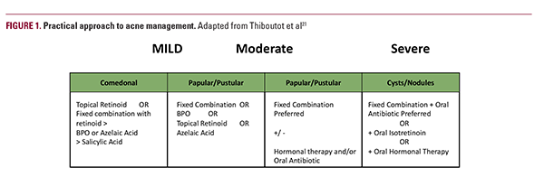 - Thiboutot DM, Dréno B, Abanmi A, et al. Practical management of acne for clinicians: An international consensus from the Global Alliance to Improve Outcomes in Acne. J Am Acad Dermatol. 2018;78(2 Suppl 1):S1- S23.e1. doi:10.1016/j.jaad.2017.09.078