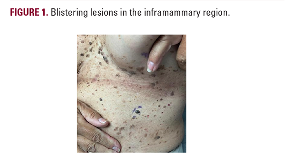 A 72-year-old female presented to the clinic for evaluation and management of previously diagnosed HHD. Symptoms began in her twenties with pruritic plaques, followed by blisters in the inframammary region, axilla, waist, and inguinal creases that would crust over and develop post-inflammatory hyperpigmentation. Pruritus would last approximately 1 to 2 weeks and resolve after approximately 1 month. In her mid-30s, a dermatologist treated her with Grenz ray, emitting radiation shown to reduce Langerhans cells. The Grenz ray was used intermittently for several decades until it lost efficacy. Since then, she has had numerous episodes that have incapacitated her, reporting a severe lack of self-confidence that prohibited her from attending social engagements and made leaving the house increasingly difficult.