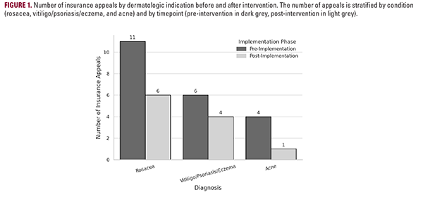 Administrative burdens, particularly prior authorization (PA) requirements and appeals, remain a significant barrier to timely dermatologic care. On average, physicians complete 39 PAs per week, dedicating 13 hours of staff and clinician time.1 Nationally, 93% of physicians report that PAs delay access to necessary treatment, with one study reporting a median delay of 12 days to initiate care.1,2 As a result, patients frequently arrive to clinic without having started any treatment due to the inability to obtain prescribed medications. In a 2024 national survey, 82% of physicians noted that PA can lead to treatment abandonment and 89% indicated that PAs contribute to burnout.1 These data underscore the urgency of addressing administrative inefficiencies in dermatology. In response, we implemented a quality improvement initiative to increase provider awareness and use of compounded medications as alternatives when standard therapies were denied.