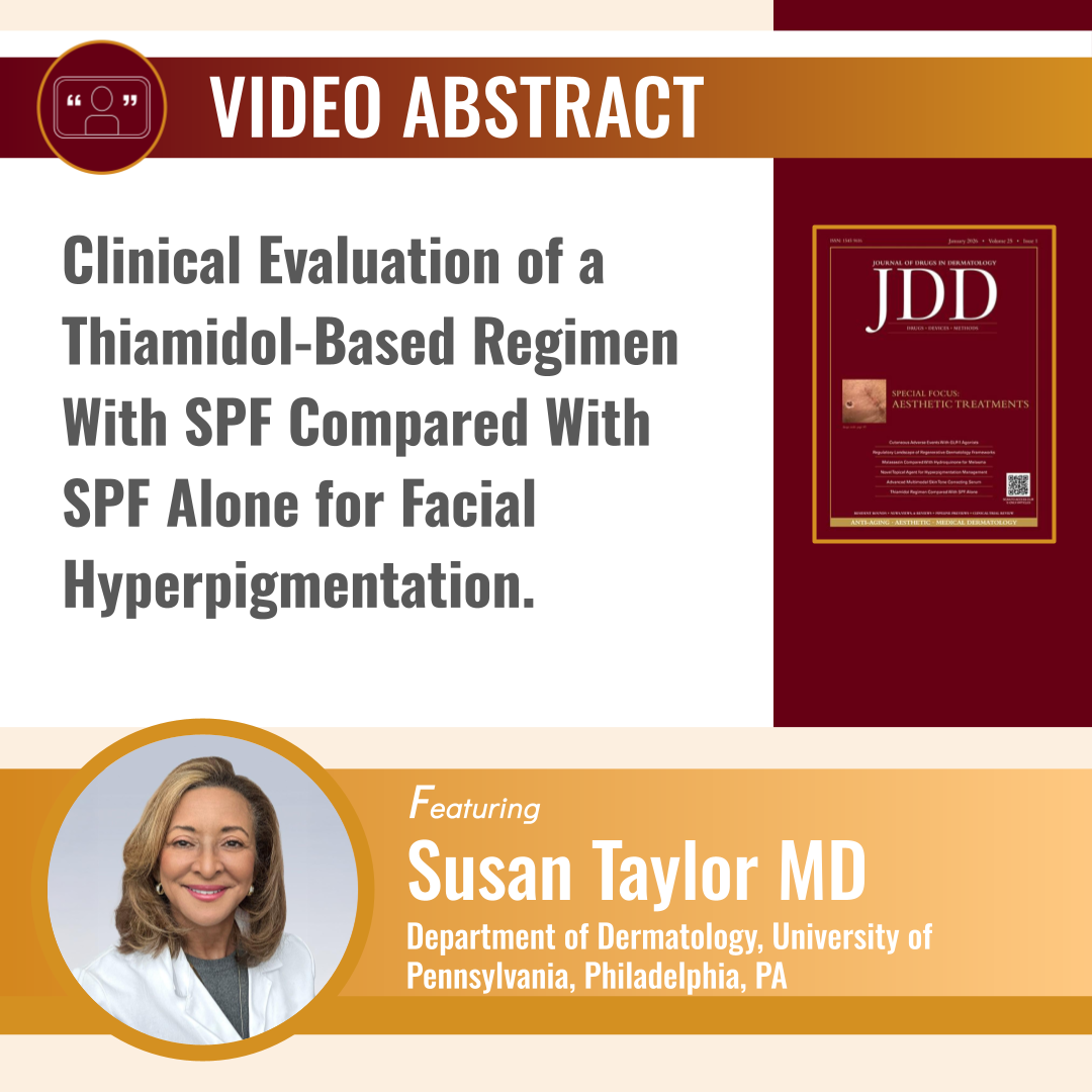 Check out our all-new JDD Video Abstract from Susan Taylor MD, who discusses Clinical Evaluation of a Thiamidol-Based Regimen With SPF Compared With SPF Alone for Facial Hyperpigmentation. Watch here