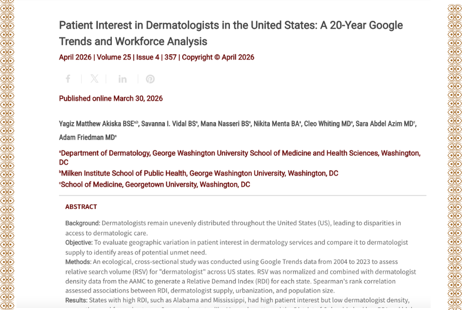 New JDD Analysis Links Google Search Interest to Dermatologist Shortages by State Have you read this article from the JDD? A recent paper examines geographic variation in patient interest for...