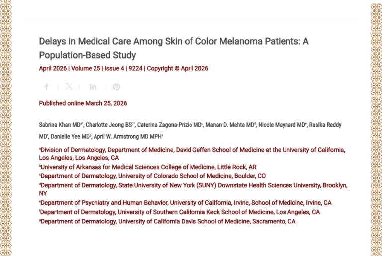 Have you read one of the latest articles published in JDD titled, “Delays in Medical Care Among Skin of Color Melanoma Patients: A Population-Based Study”? A nationally representative analysis of the National Health Interview Survey compared self-reported melanoma patients across the United States and found that individuals with skin of color reported higher rates of delayed medical care for reasons including inability to obtain an appointment, difficulty reaching clinics by phone, lack of transportation, and long wait times. After adjusting for sociodemographic factors, patients with skin of color had more than twice the odds of experiencing delayed care compared with white patients, suggesting access barriers may contribute to later stage at diagnosis and poorer outcomes. The study highlights system level obstacles that may affect timely melanoma detection and treatment in diverse populations.