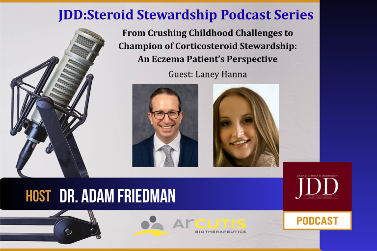 Lessons learned from a challenging lived experience is a terrible thing to waste…which is why we would NEVER do so! In this episode of the JDD Podcast’s Steroid Stewardship Series, Dr. Adam Friedman speaks with Laney Hanna, a 21-year-old nursing student who has surthrived with atopic dermatitis since infancy. From sharing her personal experience growing up with a chronic inflammatory skin disease, detailing the physical, emotional, and day-to-day challenges that persisted even when the skin appeared clear, to discussing the complexity of long term broken record steroid use (from early reliance on multiple forms of corticosteroids to navigating side effects, growth concerns, and the process of reevaluating treatment choices), the journey of the AD patient comes to life in an unparalleled manner. Join us as Laney offers valuable insight into how patients define “success,” what true partnership in care looks like, and how steroid stewardship can empower more sustainable, person-centered management of atopic dermatitis.