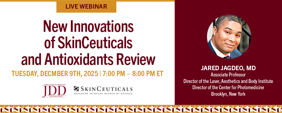 Join Dr. Jared Jagdeo, a board certified dermatologist, to learn more about new innovations of SkinCeuticals. Dr. Jagdeo will present a review of the latest antioxidant science from SkinCeuticals.